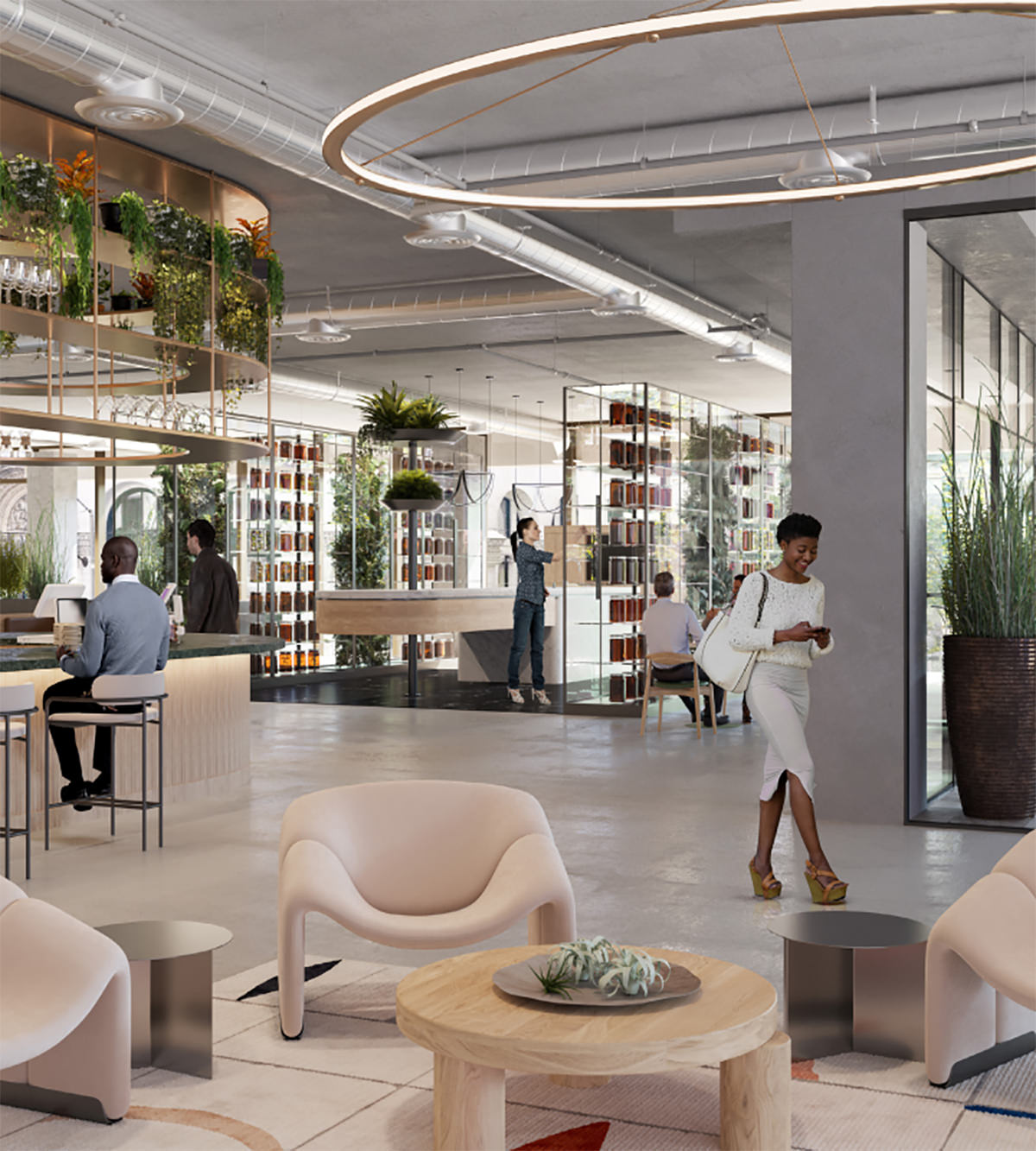 1450 Market at Hayes Point offers 20,000 square feet of customizable amenity space, with a ground floor opportunity for a dynamic community crossroads, while the second floor offers the potential for an employee clubhouse.